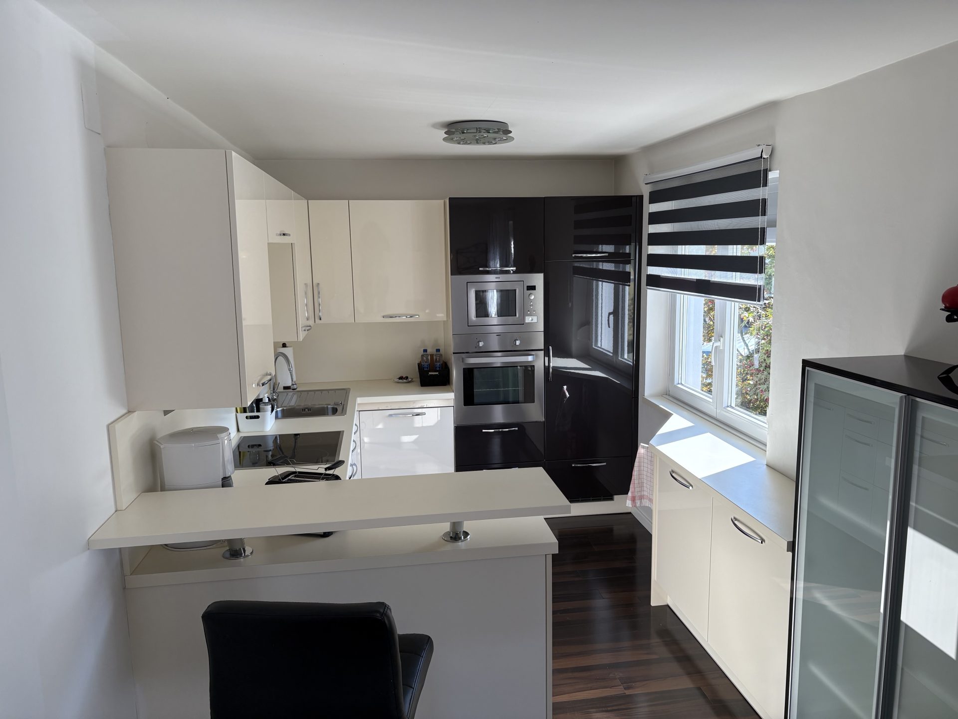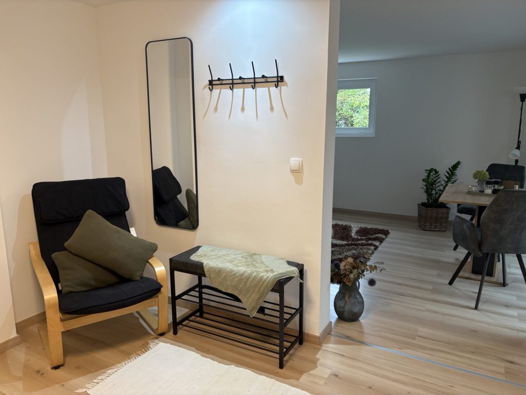 Die liebevoll eingerichtete 85 m2 Ferienwohnung „Werner“ besteht aus einem großzügigen Eingangsbereich, einem gemütlichen Wohn- und Essbereich, einer voll ausgestatteten Küche mit Cerankochfeld, Backofen, Mikrowelle, Nespresso Kaffeemaschine und einem Kühlschrank mit Gefrierfach.