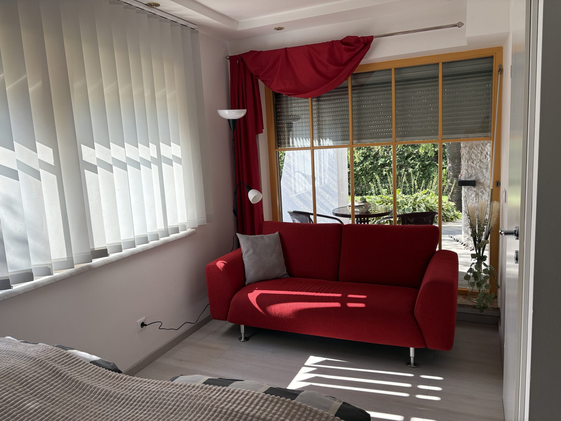 Vor der Ferienwohnung befindet sich ein kleiner abgegrenzter Sitzbereich, wo man den ereignisreichen Tag bei einem Glas südsteirischen Wein ausklingen lassen kann oder man macht es sich im Garten der Villa Tanja gemütlich.