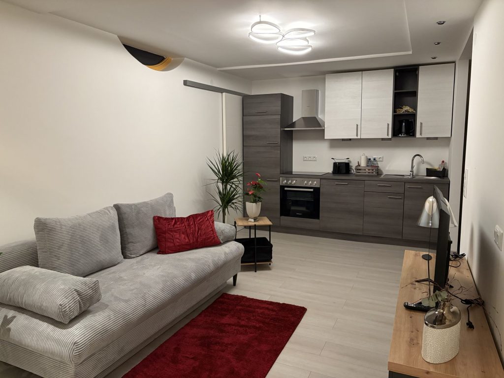 Die liebevoll eingerichtete 45 m2 Ferienwohnung „Monika“ besteht aus einem einladenden Eingangsbereich, einem gemütlichen und offenen Wohn-/Ess- und Schlafbereich, einem modernen Badezimmer mit Dusche und WC und einer voll ausgestatteten Küche mit Cerankochfeld, Backofen, Nespresso Kaffeemaschine und einem Kühlschrank mit Gefrierfach.